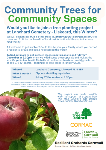 We are excited to be working with Cornwall Council & Cormac this Winter to plant 55 fruit trees across 4 locations in Cornwall.